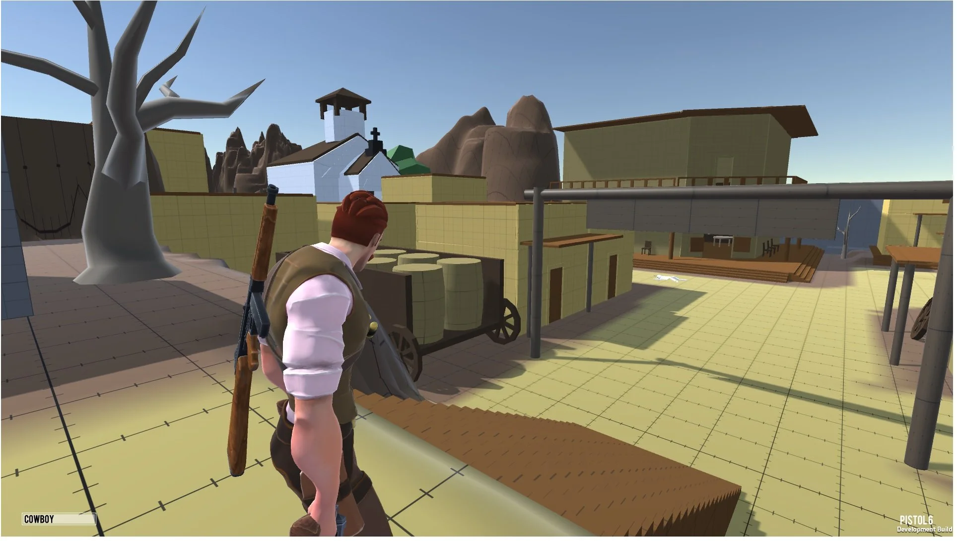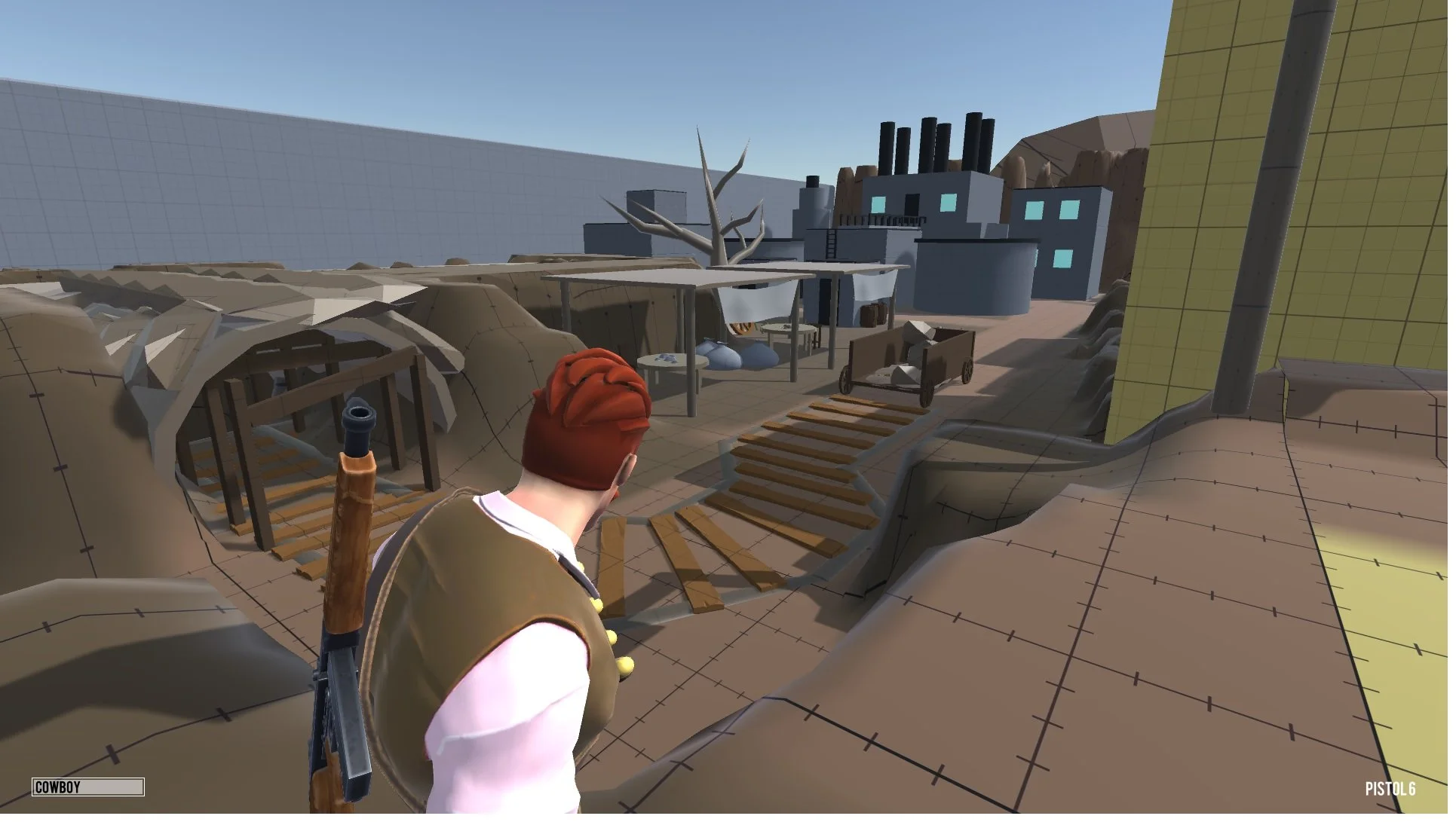 Create a spatial cluster within a “Ghost” town with the gameplay purpose of figuring out the mystery, exploring, and finding out what happened.